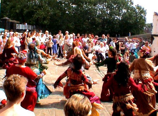 These pictures are taken at the performances at the Tameside Cultural Fusion Day in May 03 at the Portland Basin Museum. On this occasion we had 16 of our 26 strong group - the full number tend to come on the larger events. |